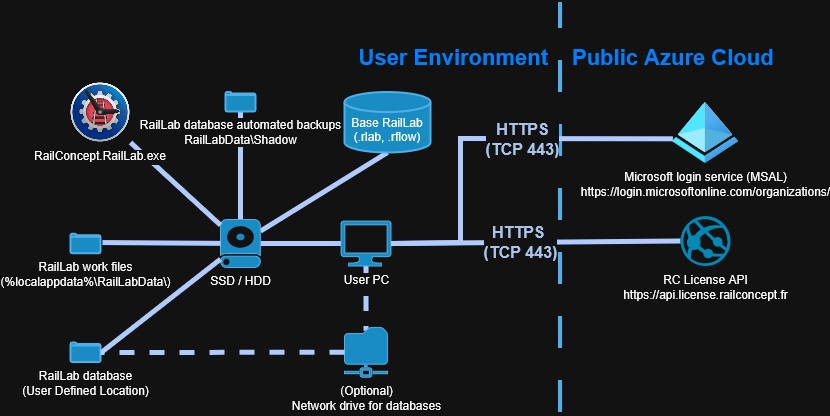 | RailLab (User PC) | https://api.railsync.fr | TCP 443 (HTTPS) | Optional service |